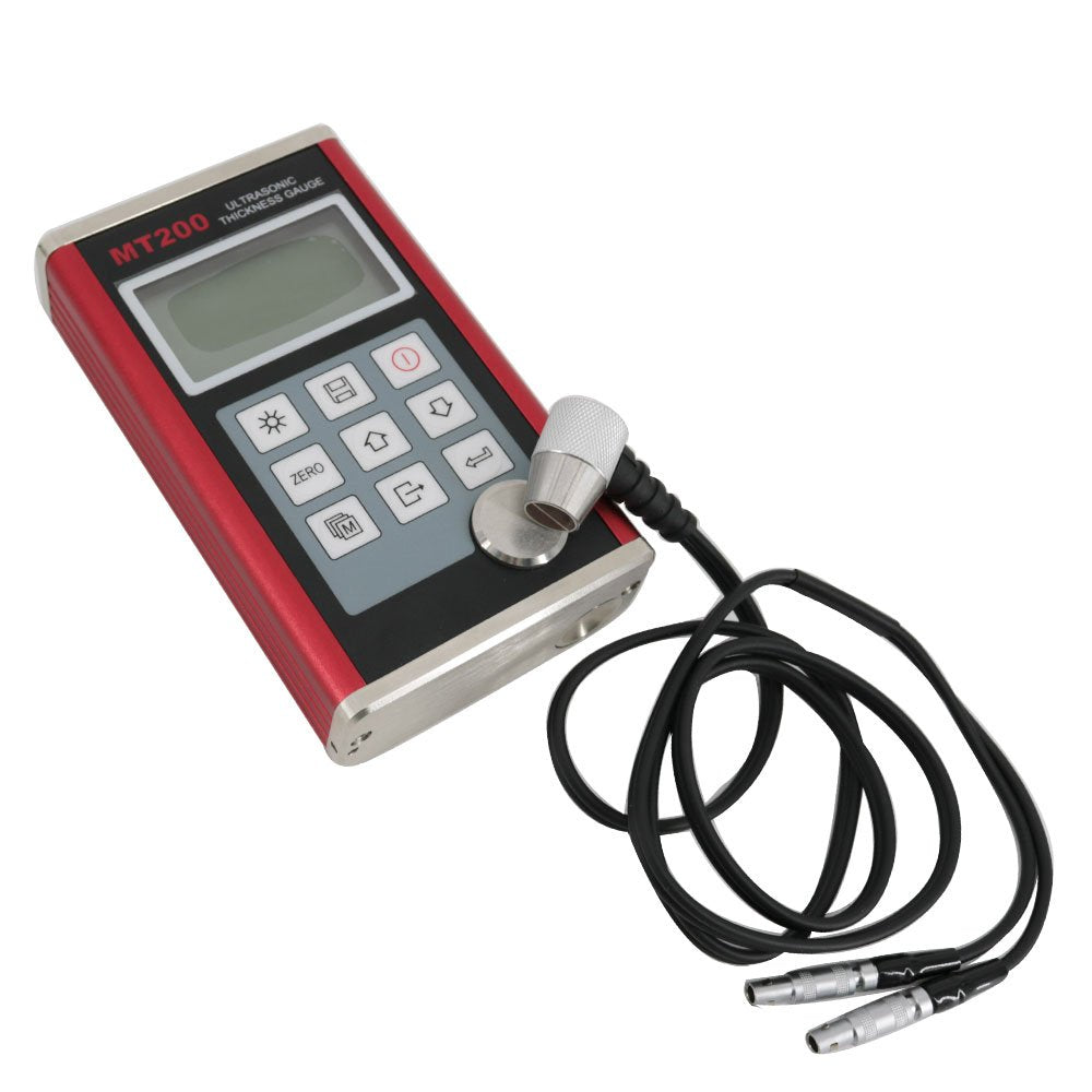 Details: The model MT200 is a digital ultrasonic thickness gauge. Based on the same operating principles as SONAR, the MT200 is capable of measuring the thickness of various materials with accuracy as high as 0.01 millimeters, or 0.001inches. It is widely used in petroleum, chemical, metallurgy, shipbuilding, aviation, aerospace and other fields of production equipment, but also can be used for accurate measurement of various materials and various kinds of machining parts.