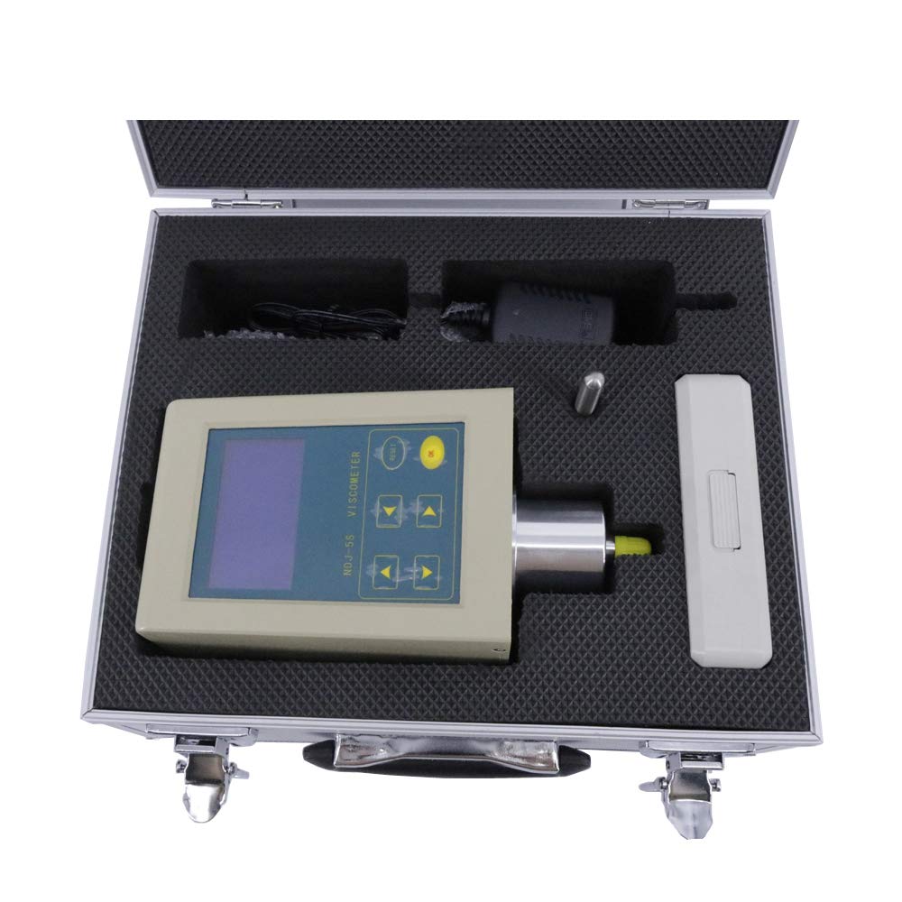 Details: Digital viscometer is an intelligent liquid viscosity measuring instrument. Liquid crystal backlight display has the functions of steady speed, good accuracy and easy operation. It can measure the viscosity resistance and absolute viscosity of liquid. Widely used in oil, paint, food, medicine, adhesives, cosmetics and other fluid viscosity.The measuring instrument has high sensitivity, the test results are reliable, use convenient operation, modelling beautiful and easy, and other featuresTechnical Specifications* Type: NDJ-5S* Measurement range: 1 ~ 1 x 100000 mPa x s* Rotor specifications: 1-4 rotor* Rotor speed: 6, 12, 30, 60, turn/points* Since the move files Can automatically choose the right number and rotor speed* Interface choice: Chinese/English* Readings stable cursor: ShuTiao square full case show when reading the basic stability* Measurement accuracy: Plus or minus 2% (Newton liquid)* Power supplies: Ac 220 V ± 10% frequency 50 ± 10% Or 110V (We will Send According to Your Country's Voltage)* Work environment: Temperature 5°C to 35 °C , relative humidity is not more than 80%* Shape dimension: 370 x 325 x 280 mm* Net weight:6.8kg* Standard Accessories: NDJ-5S Digital Rotary Viscometer, Rotors, 1#, 2#, 3# and 4#, Power adapter, Protection bracket, Base, Lifting assembly, Operation manual , License * Optional Accessories: 0# rotor, (0 rotor can be measured the low viscosity to 0.1 mPa)If you need Optional Accessories,Please contact us.