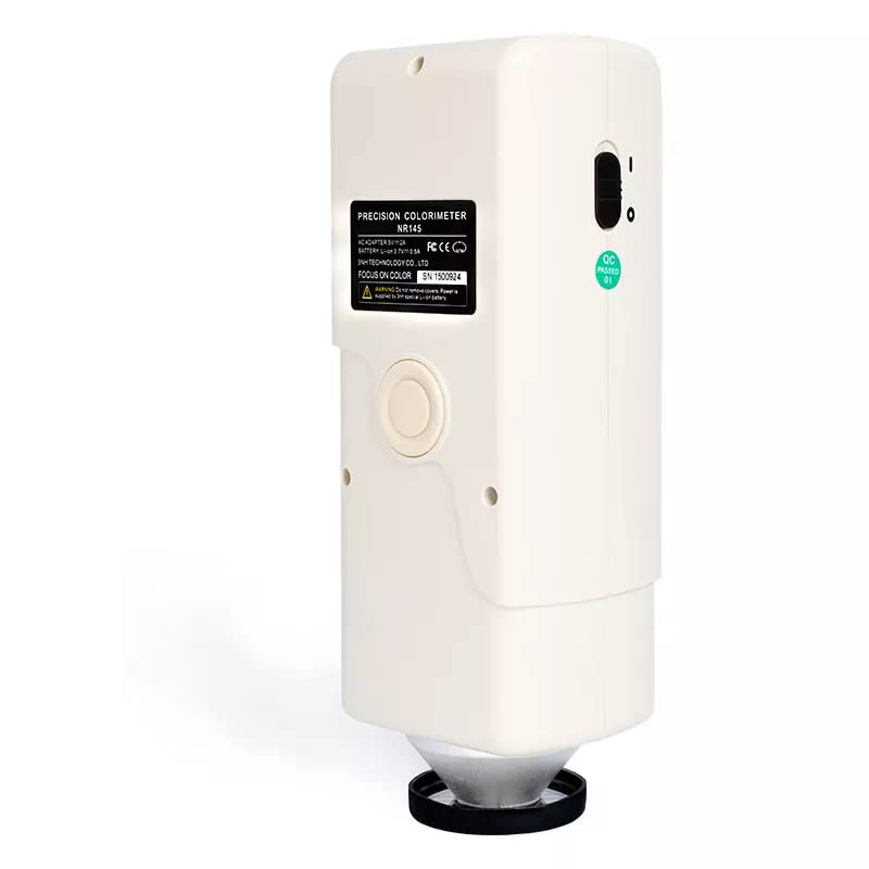 Details: NR145 is a precision colorimeter with 45°/0° viewing angle after NH310, NH300, NR200, NR110 and NR100 colorimeter. NR145 colorimeter has strong functions which applied a number of differential innovative technologies. It can measure accurately in 45° illumination /0° receiving under the SCE mode.Technical SpecificationsIlluminating/Viewing Geometry:45°/0°Measuring Aperture:Φ8mmMeasurement End-face:Large stable end faceDetector:Silicon photoelectric diodeLocating:Illuminating Locating/Cross LocatingColor Space:CIEL*a*b*C*h* CIEL*a*b*CIEXYZColor Difference Formula:E*ab L*a*b* E*C*h*Light Source:D65Light Source Device:LED blue light excitationErrors Between Each Equipment:≤0.80ΔE*abStorage:100pcs standards 20000pcs samplesRepeatability:Standard deviation within ΔE*ab 0.08,Average of 30 measurements of standard white plateWeight:500gDimension:205×67×80 mmPower source:Rechargeable lithium-ion battery 3.7V@3200mAhLamp Life:5 years, more than 1.6 million measurementsCharging Time:The first charging time is 8 hours--100% electricity PC Software:CQCS3 Software Printer (optional):Miniature thermal printer